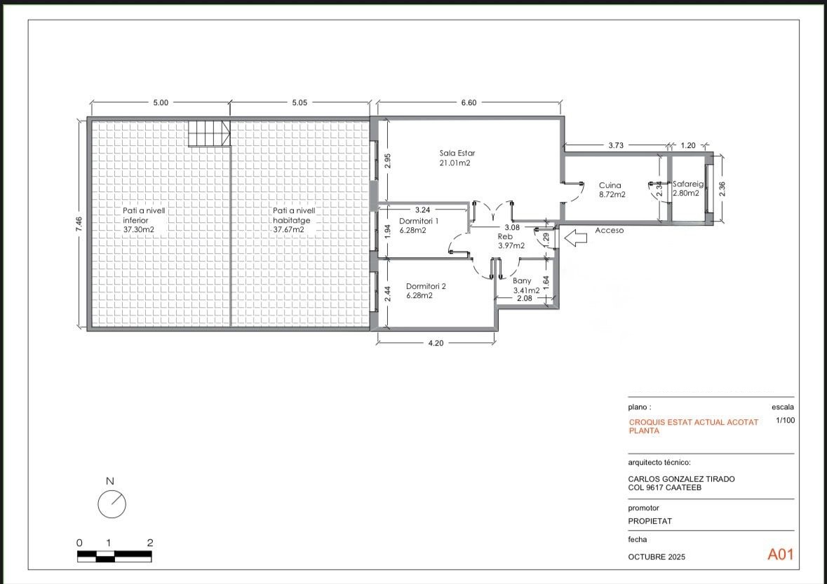 El verdadero protagonista de esta vivienda es su espacio exterior privado, una amplia zona de terraza-jardín de 90 m² con barbacoa, perfecta para crear diferentes ambientes: zona de comedor, rincón chill-out, huerto urbano o área de juegos para niños o mascotas.